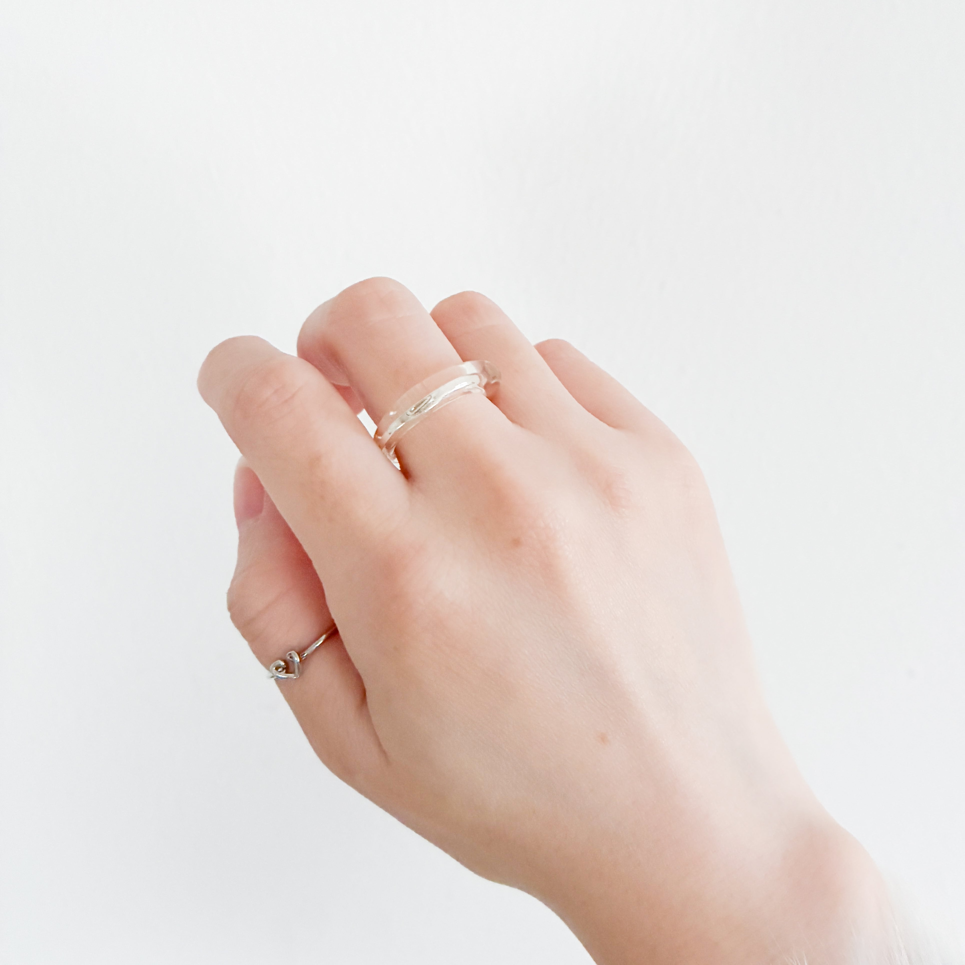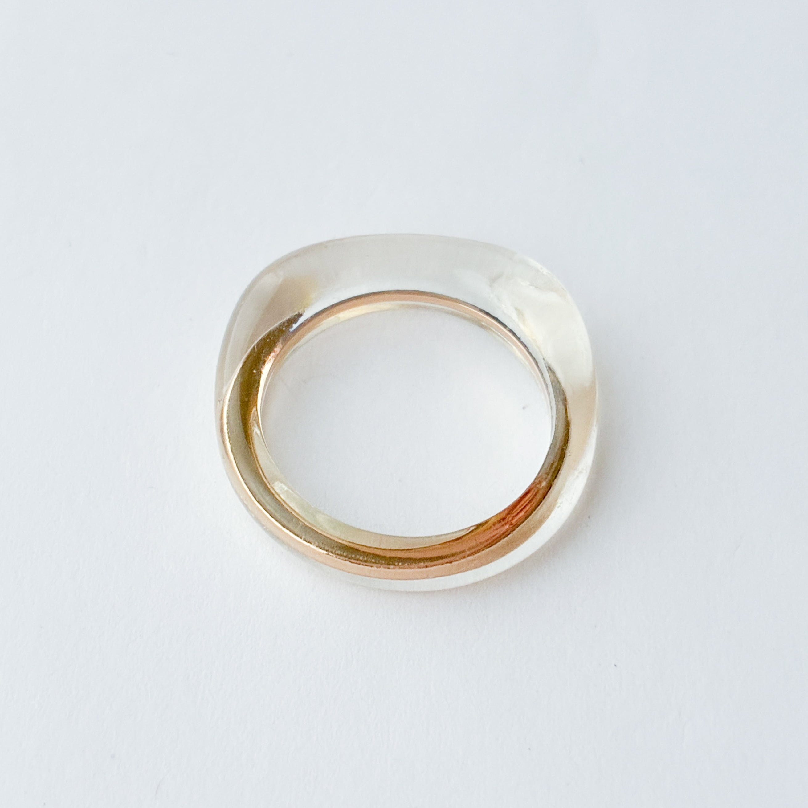 メタルプレートが埋め込まれた一癖あるアクリルリング。