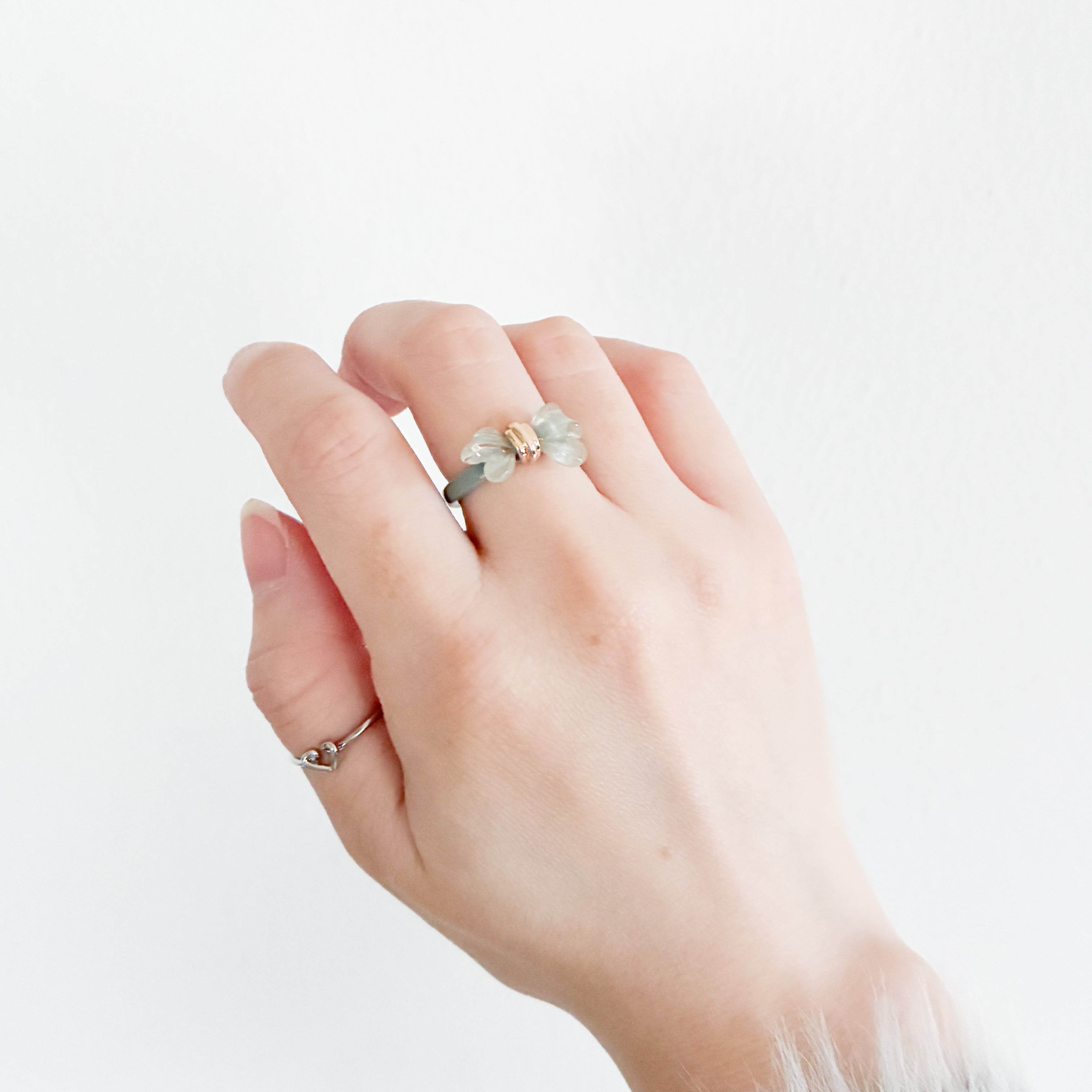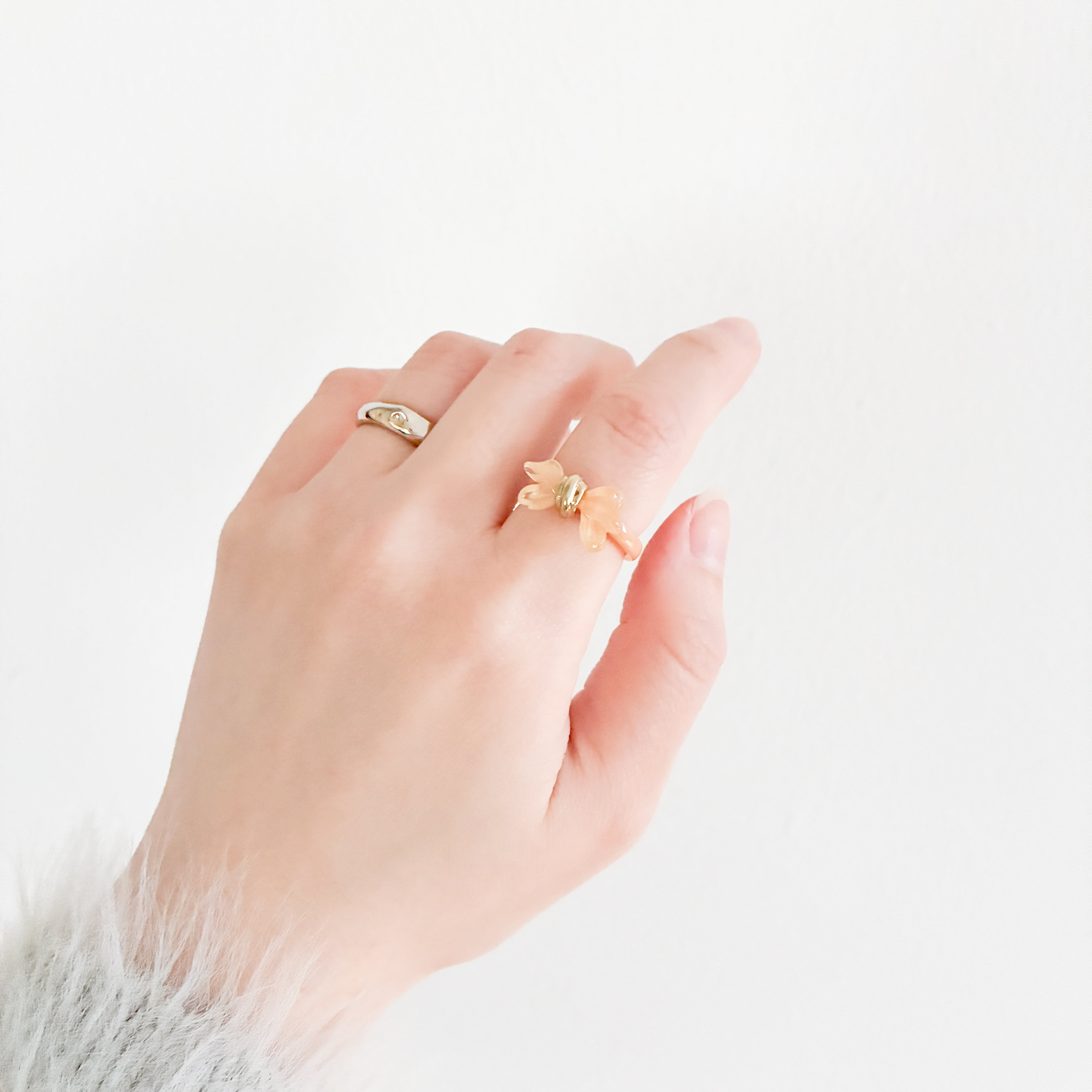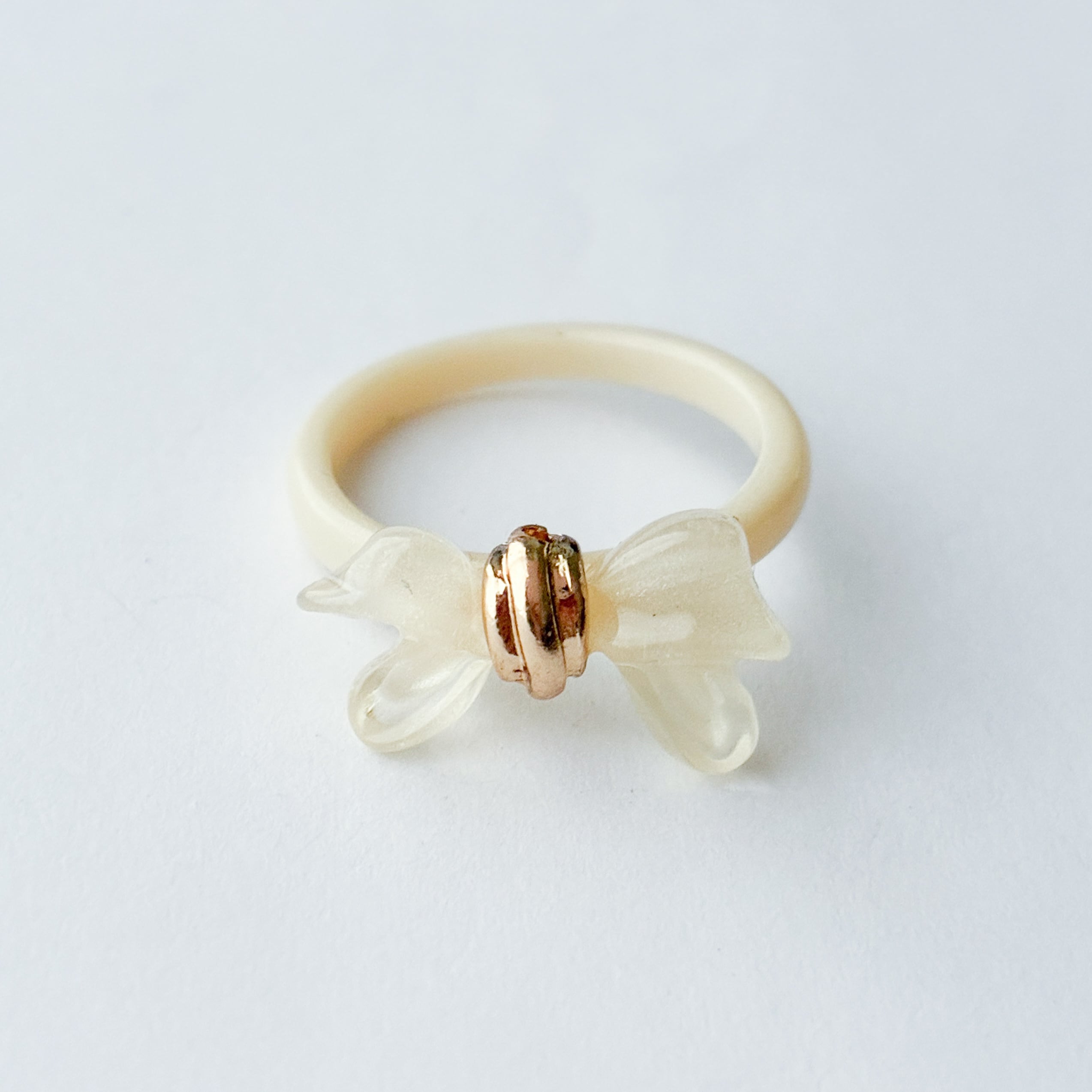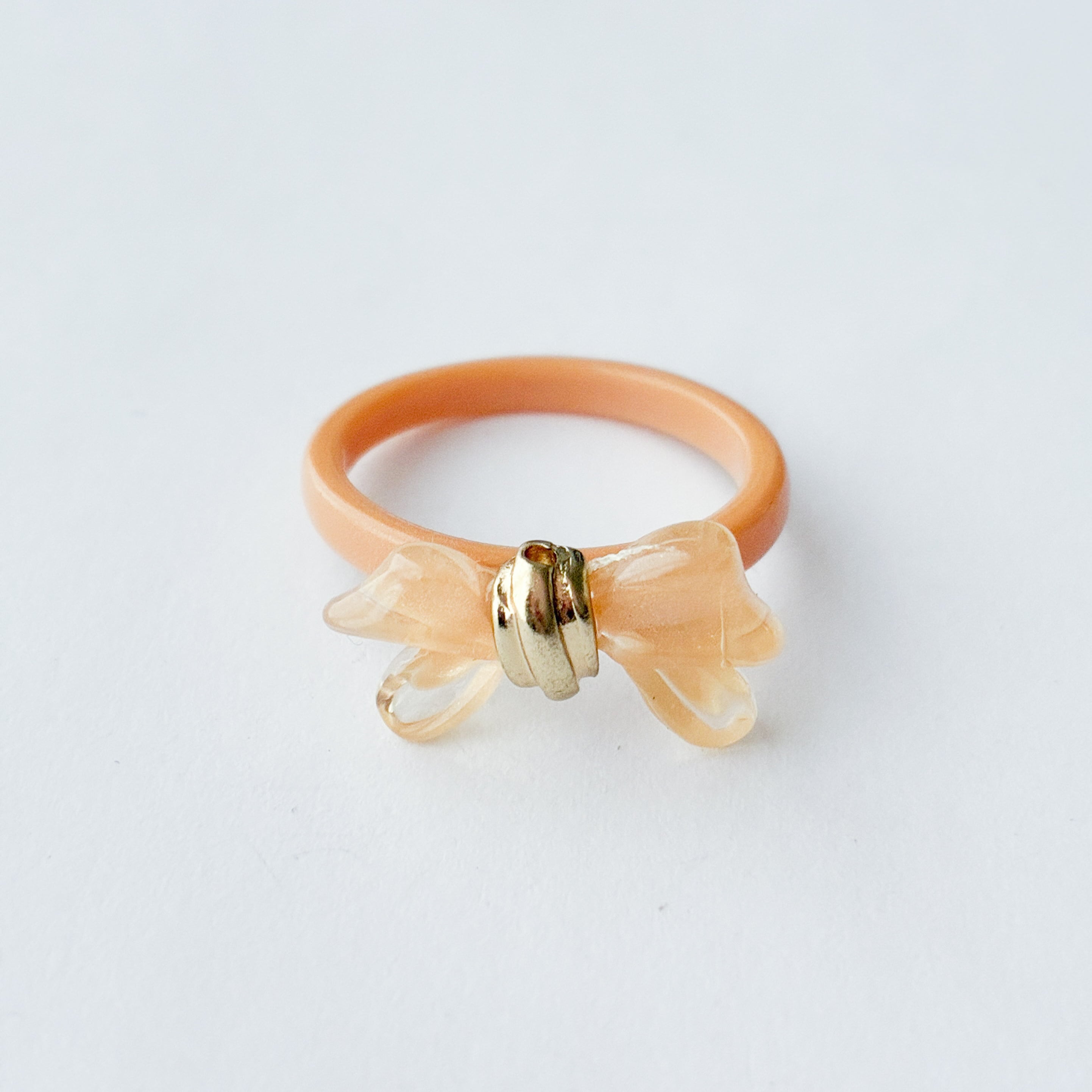 結び目がメタルになっているカラバリ豊富なリボンリング。