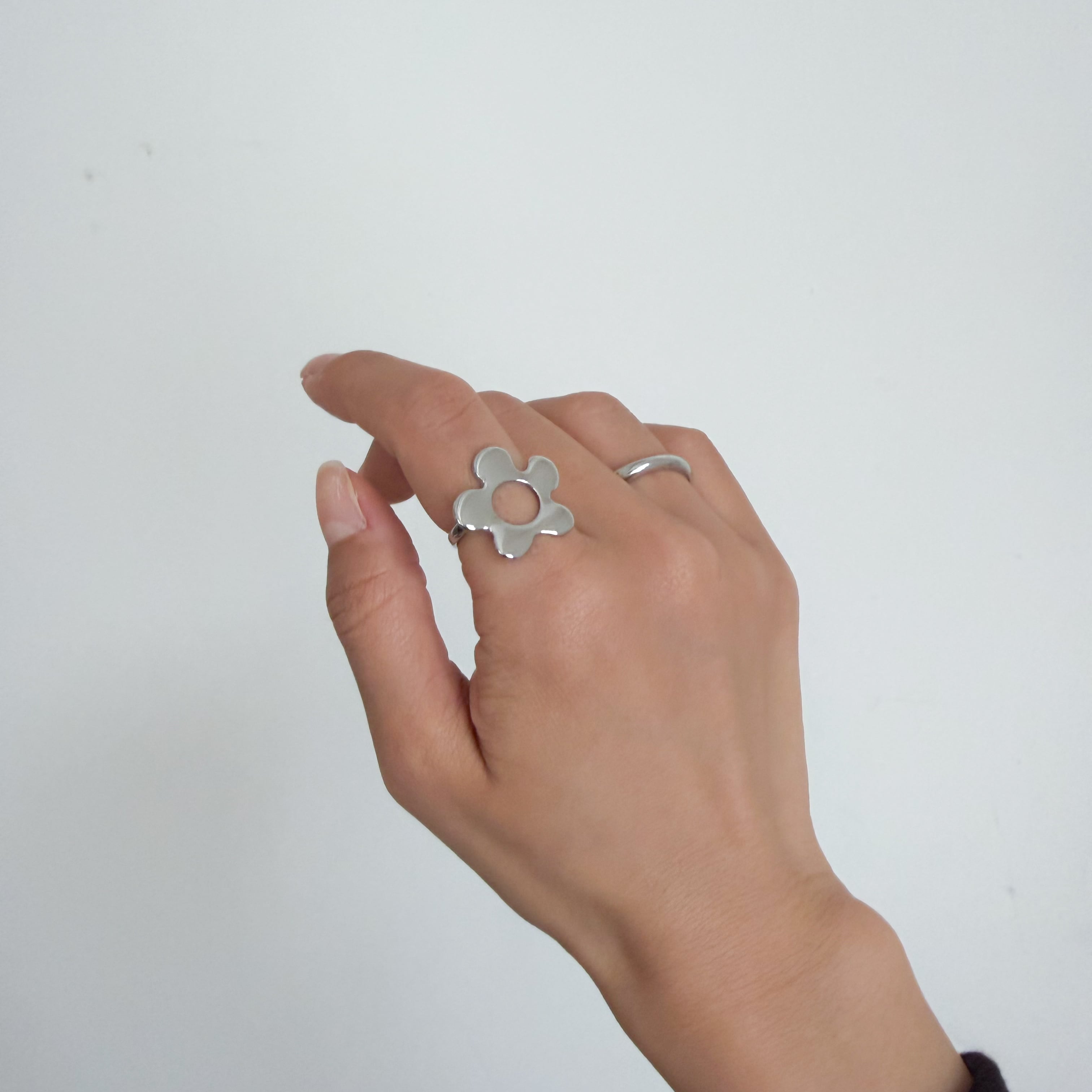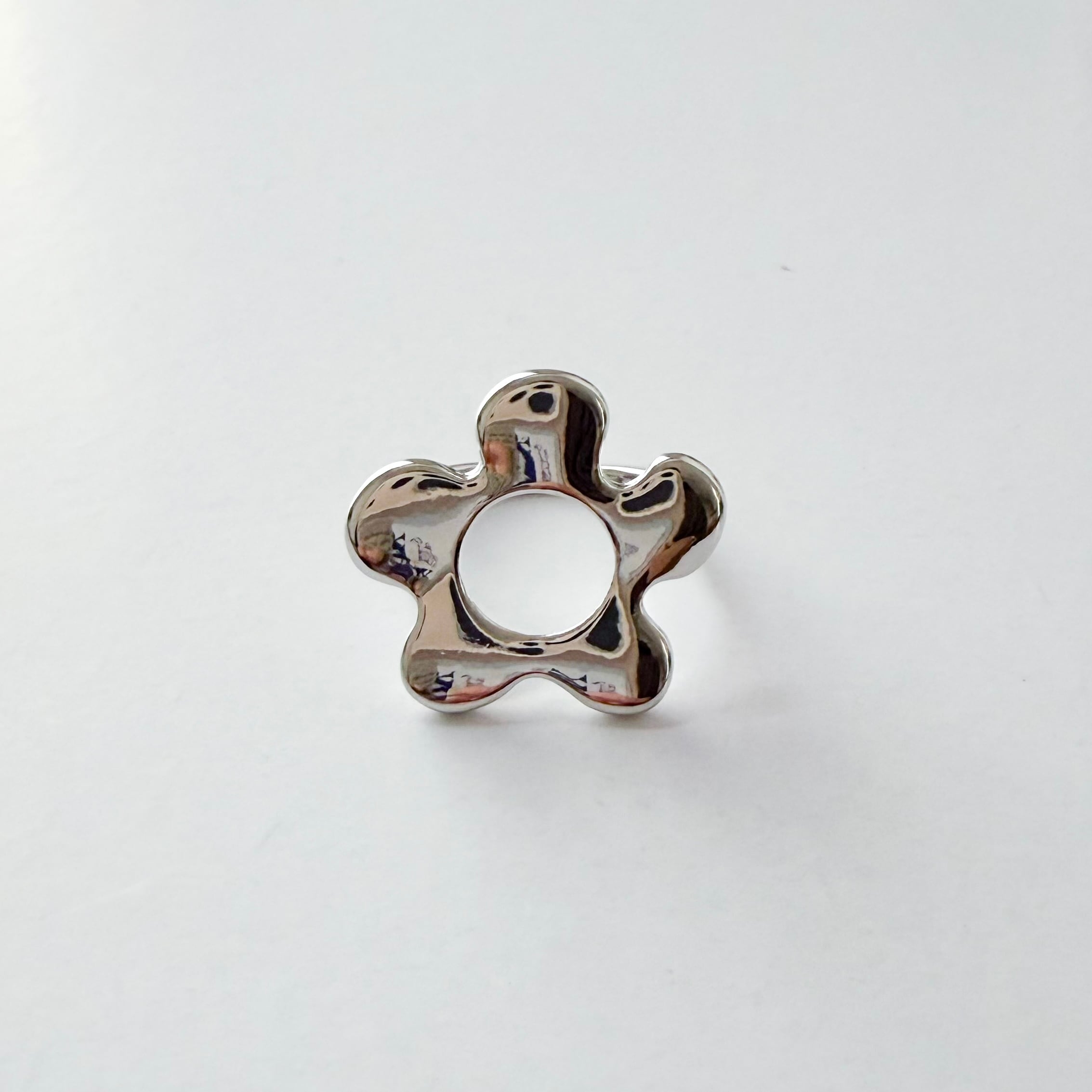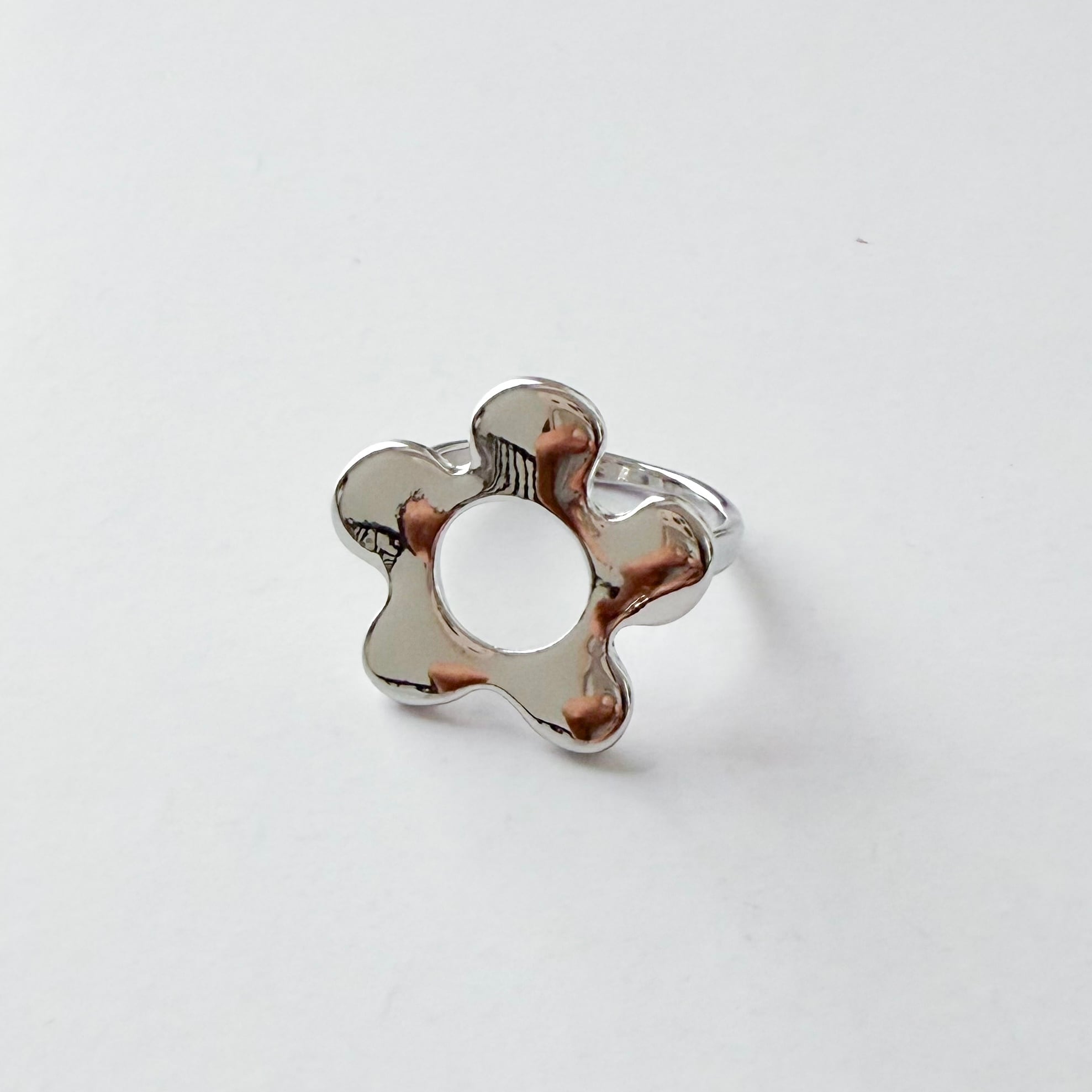 丸みのあるデザインが特徴的なお花のリング。