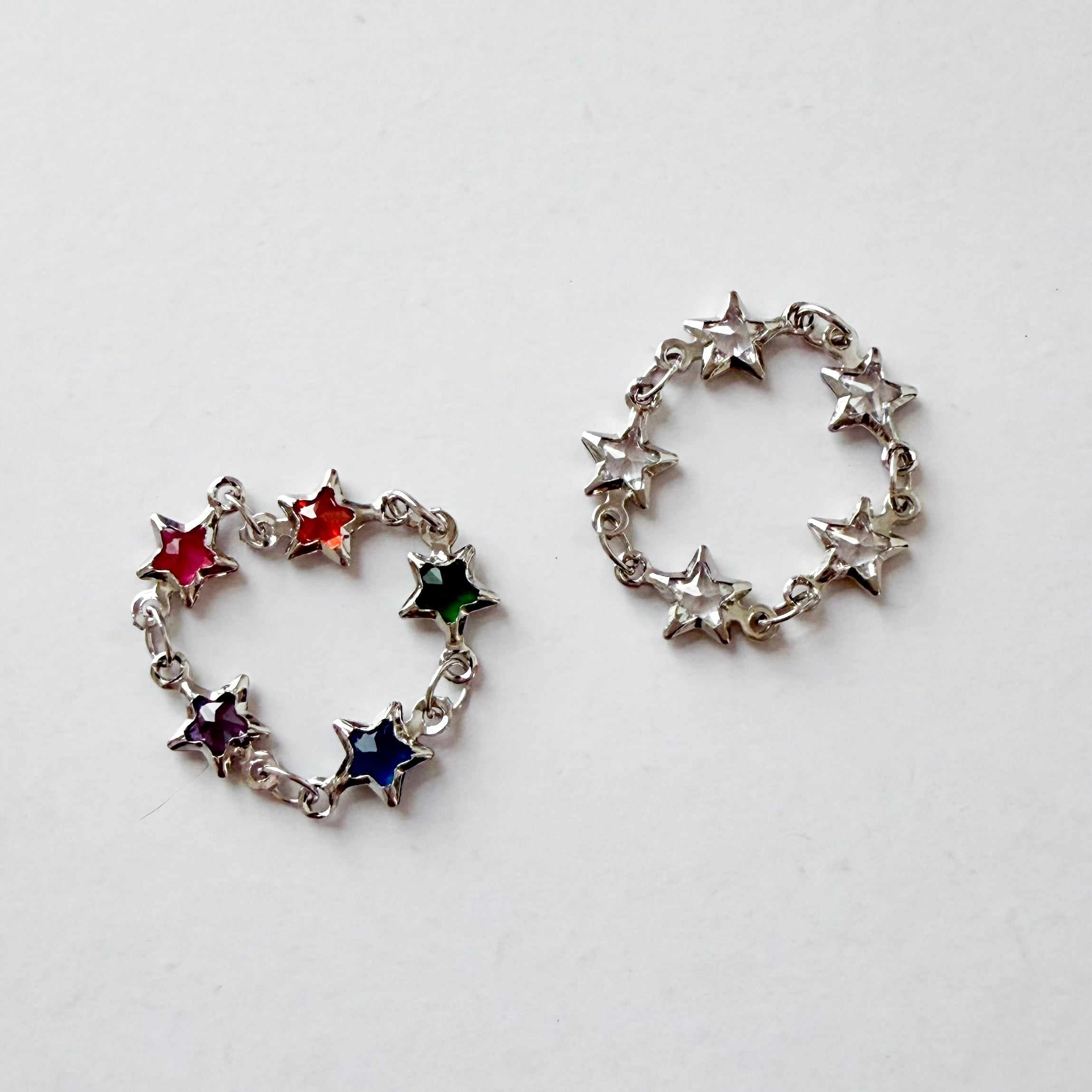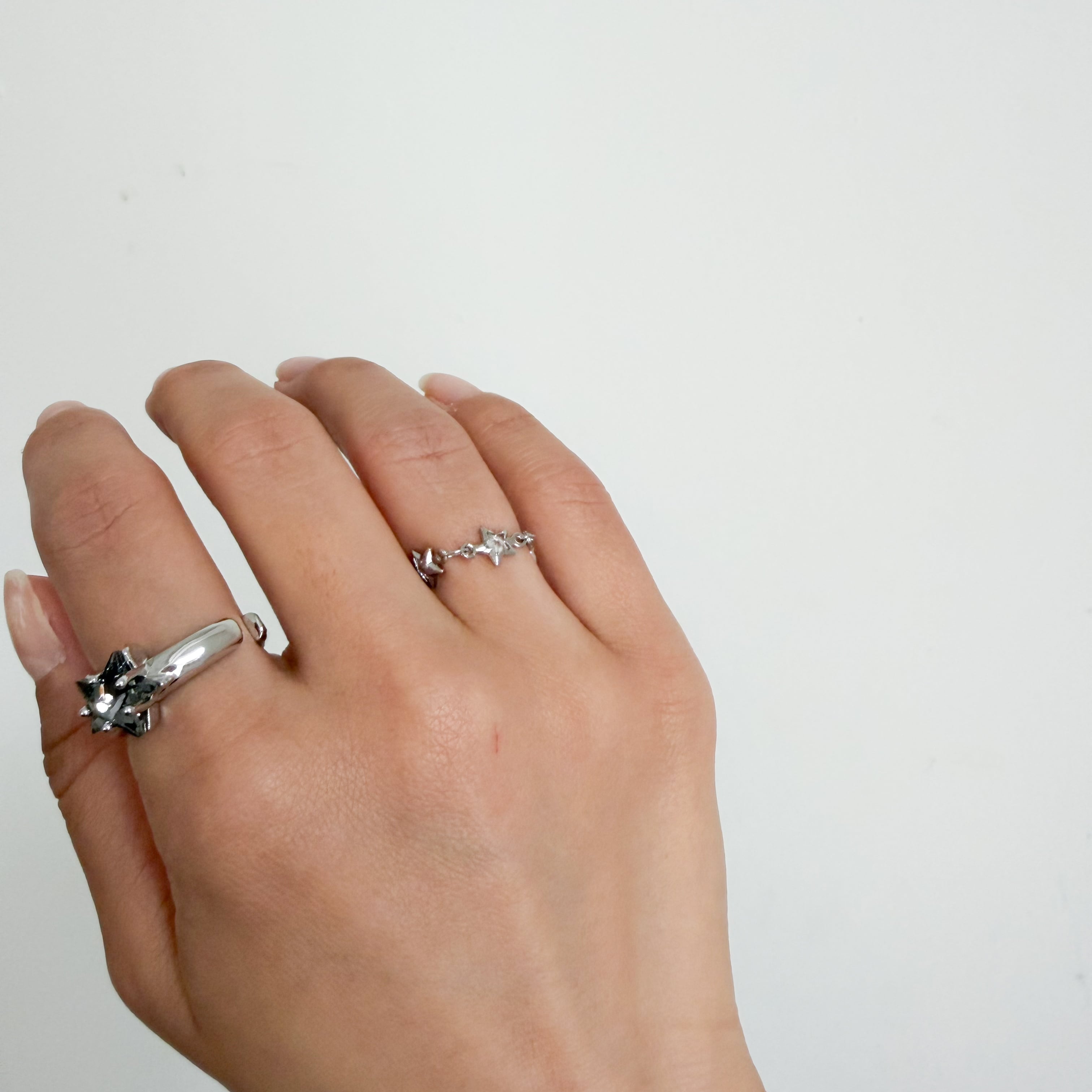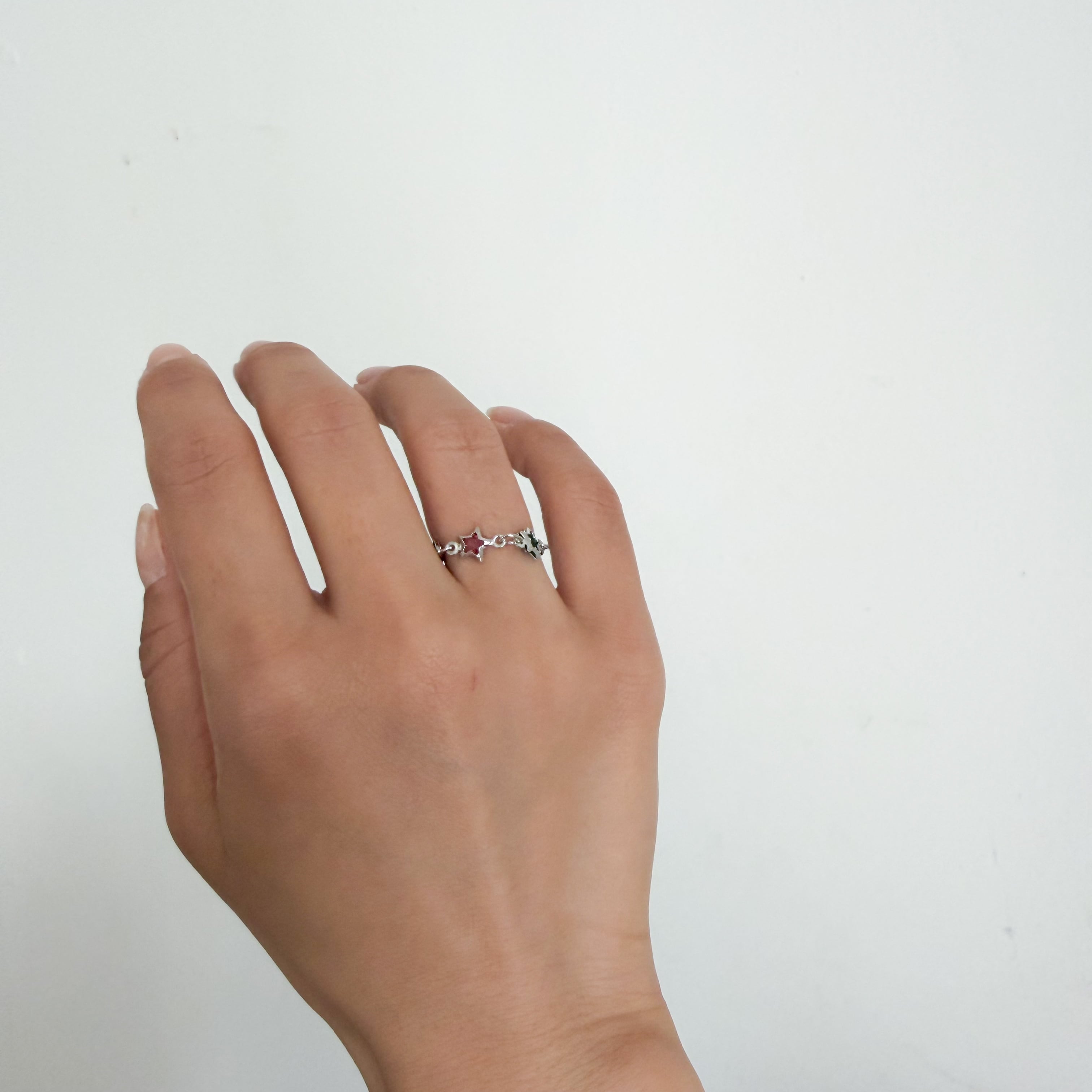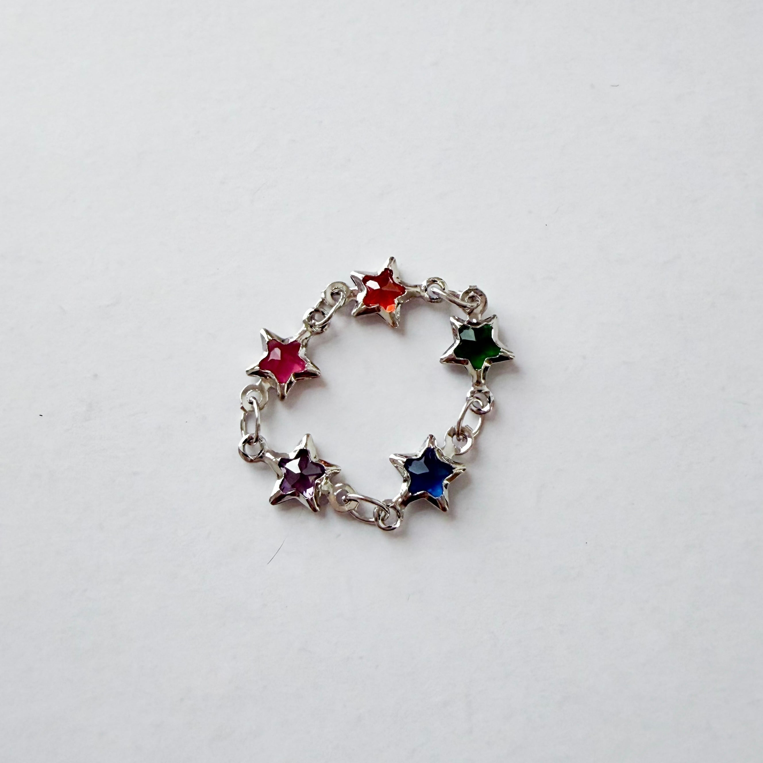 小さな星の中にストーンが埋め込まれたチェーンリング。
