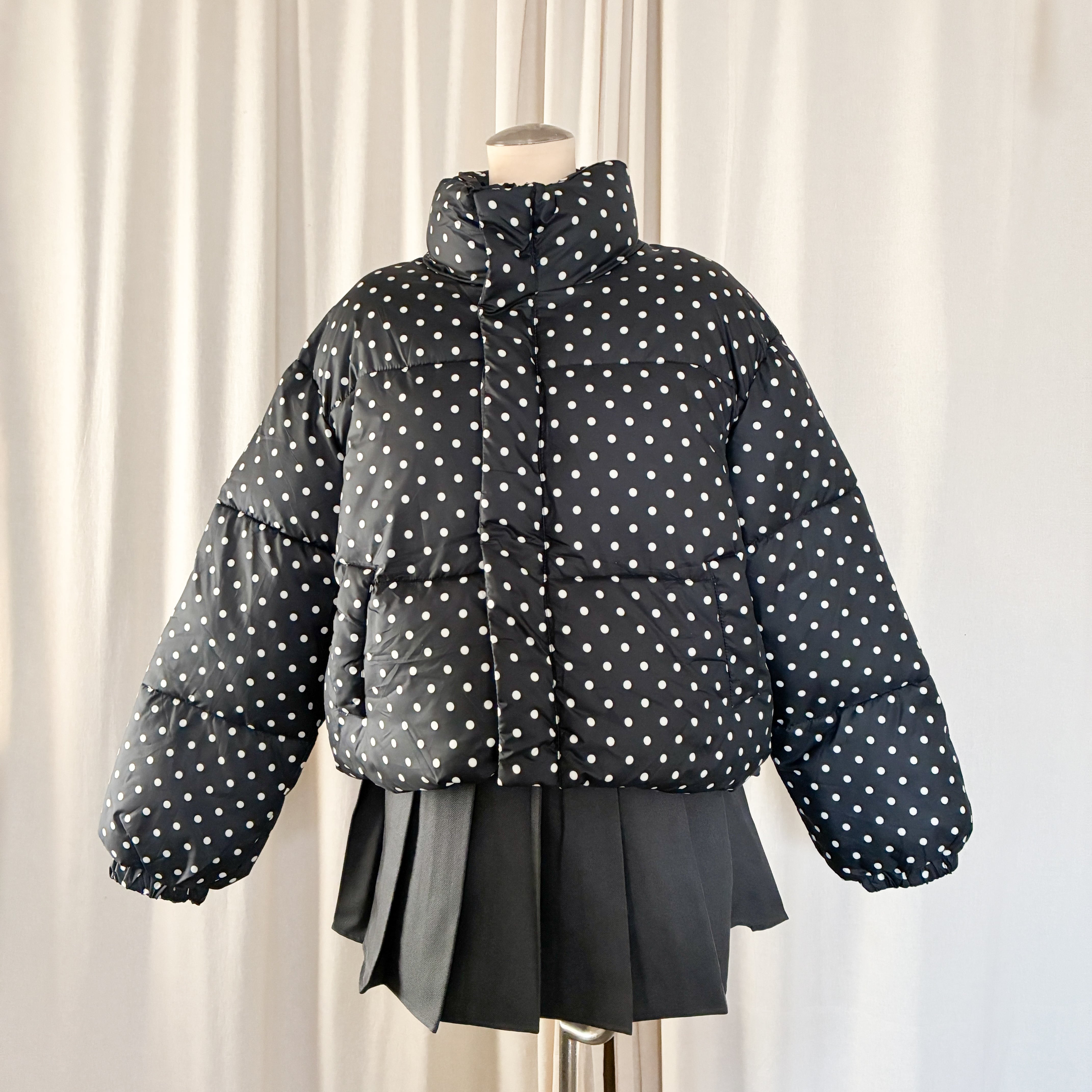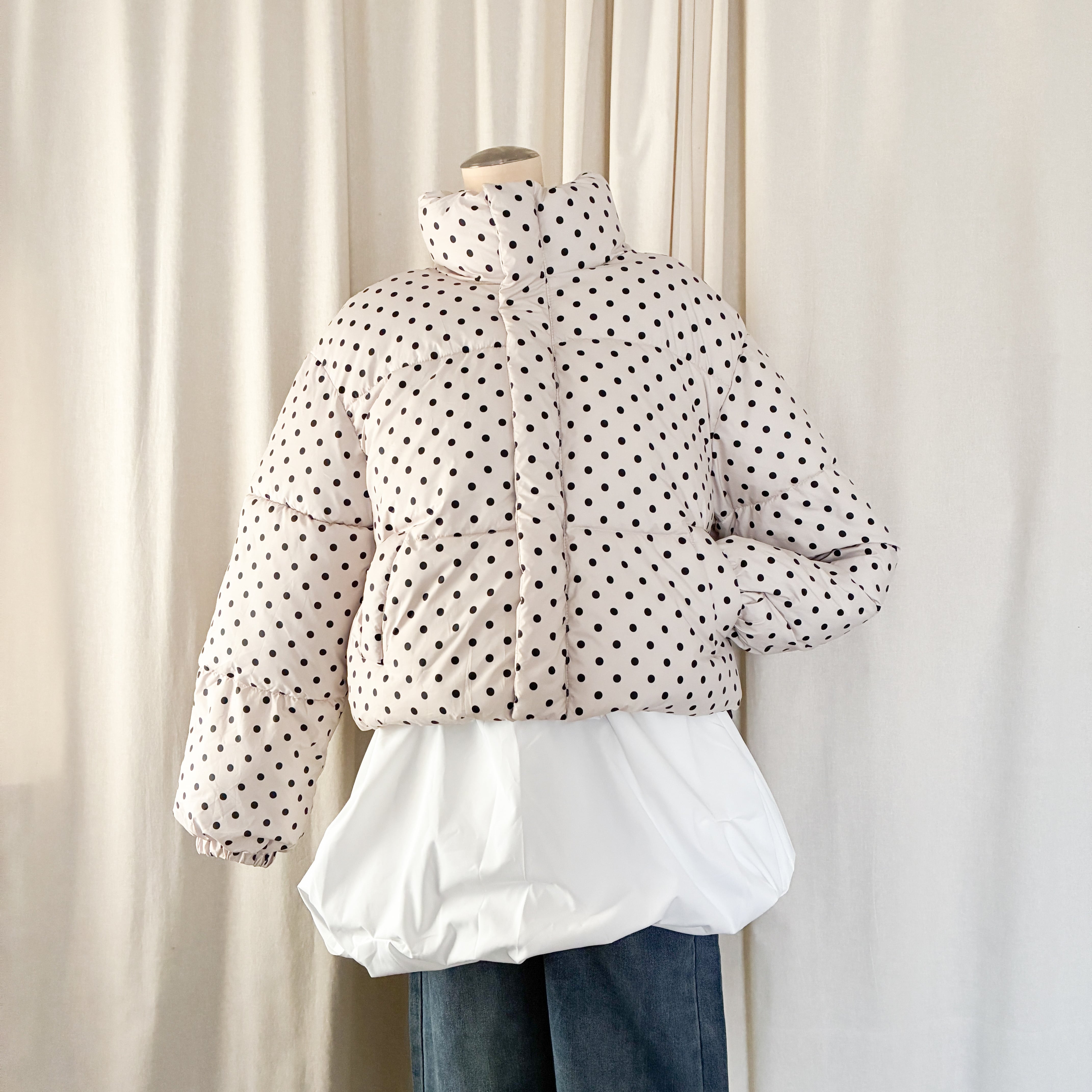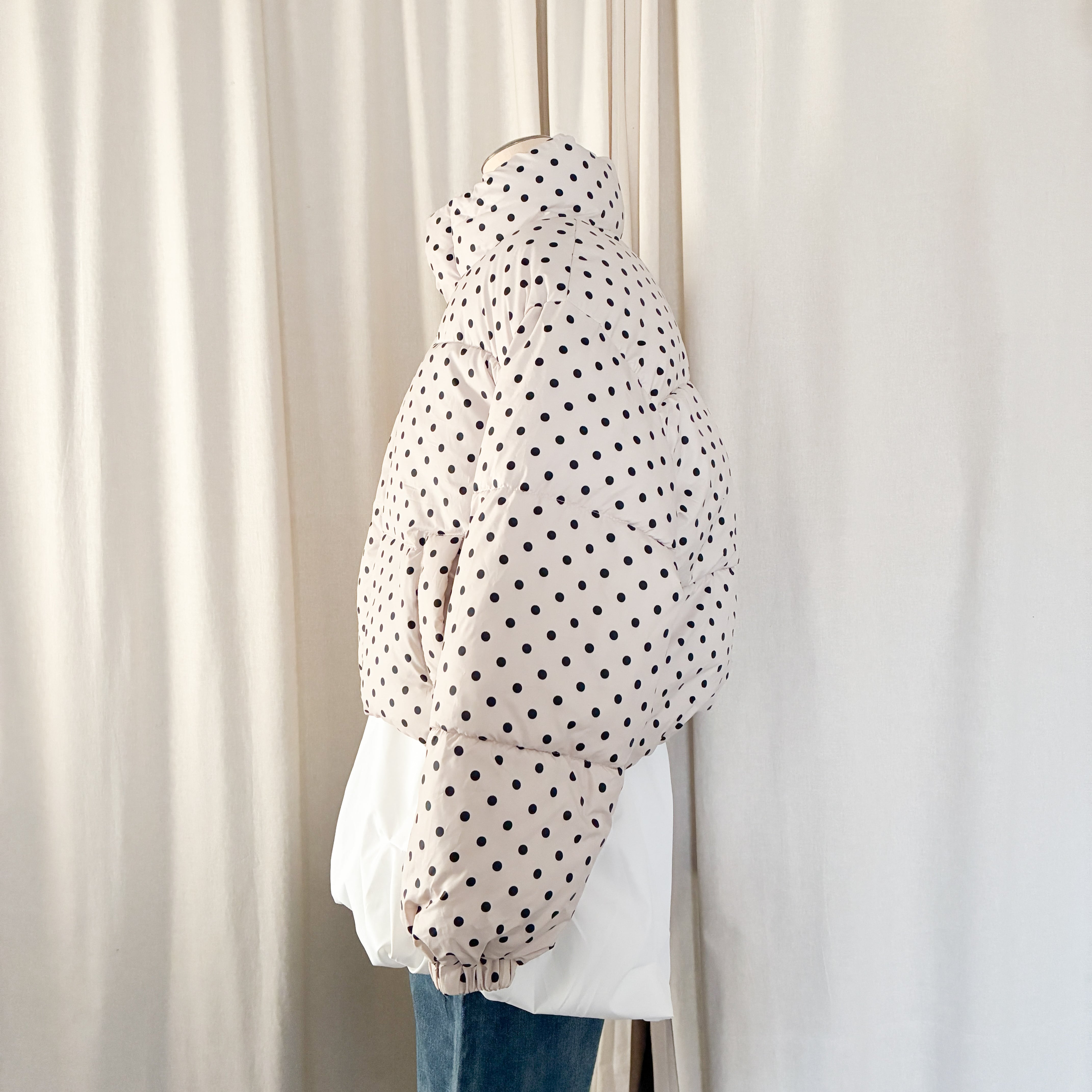 ドット柄がアクセントの可愛らしいダウン。