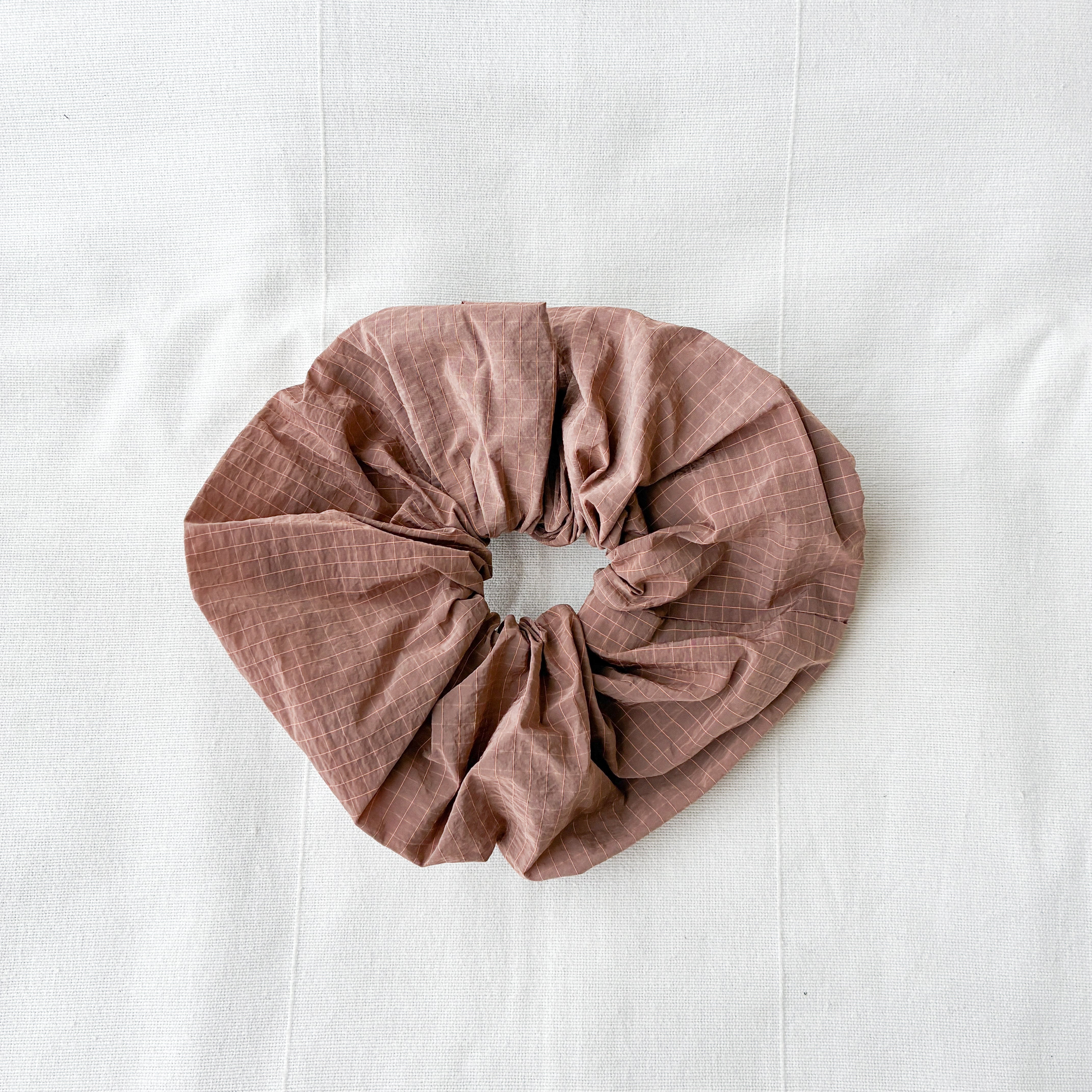 細めの格子柄が特徴のシュシュ。