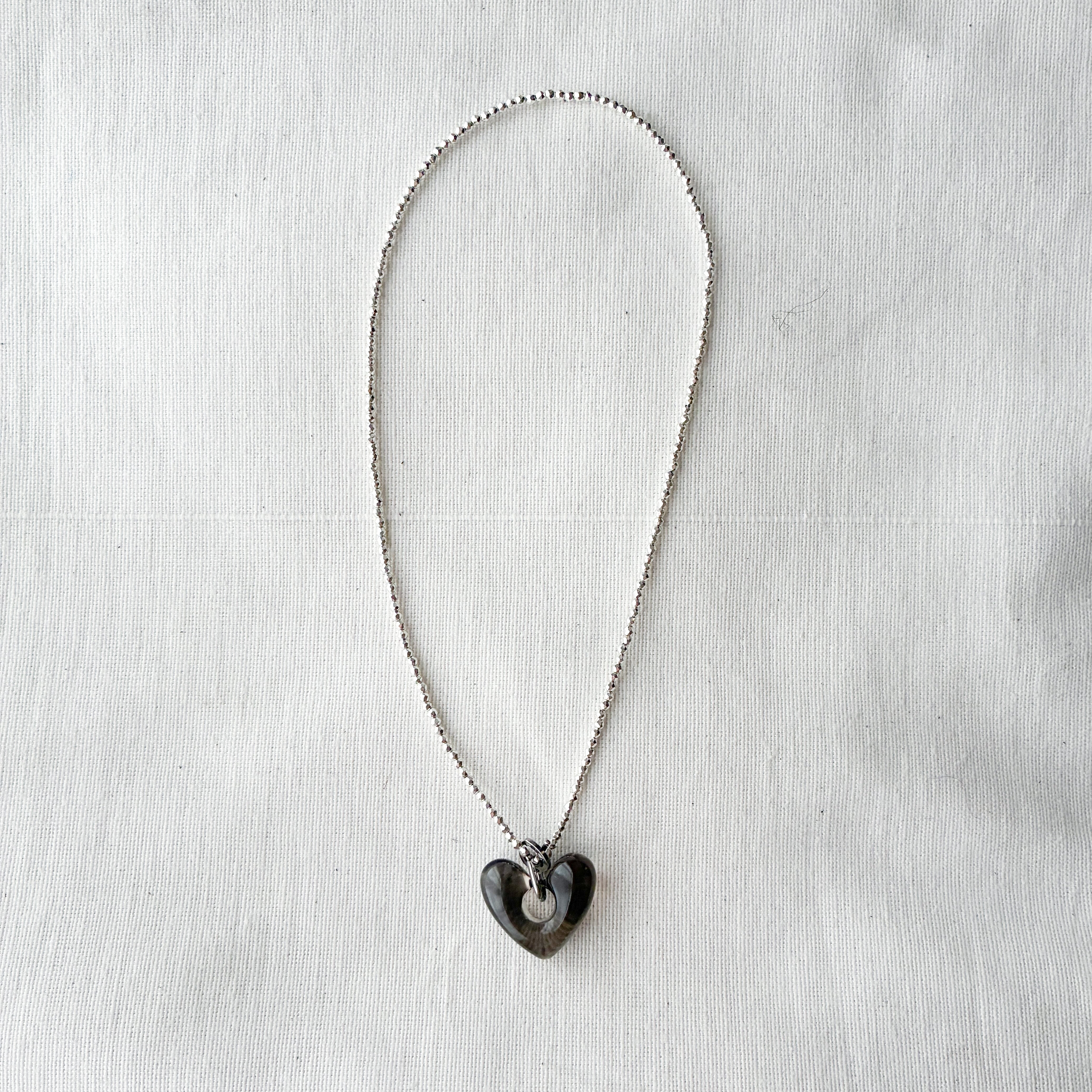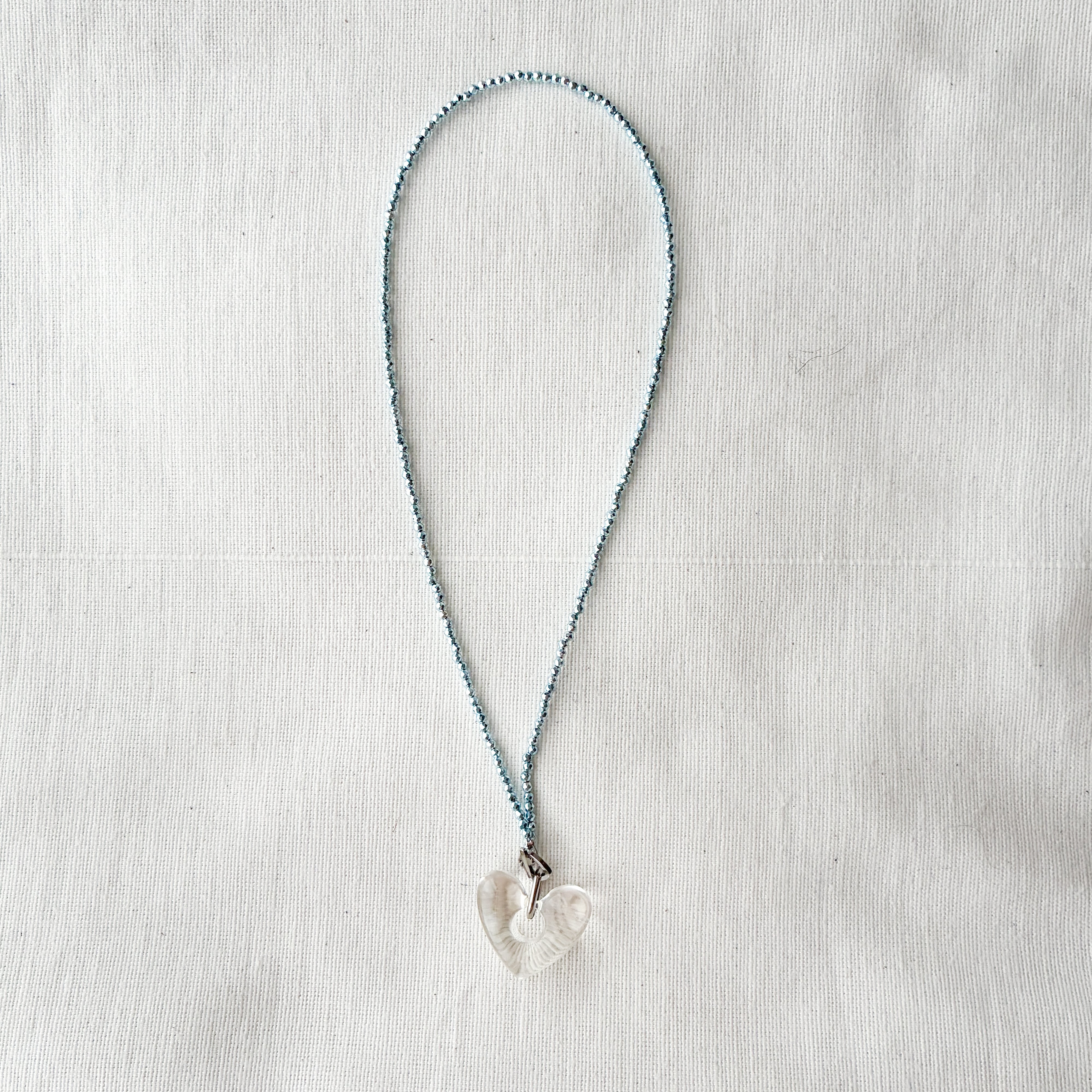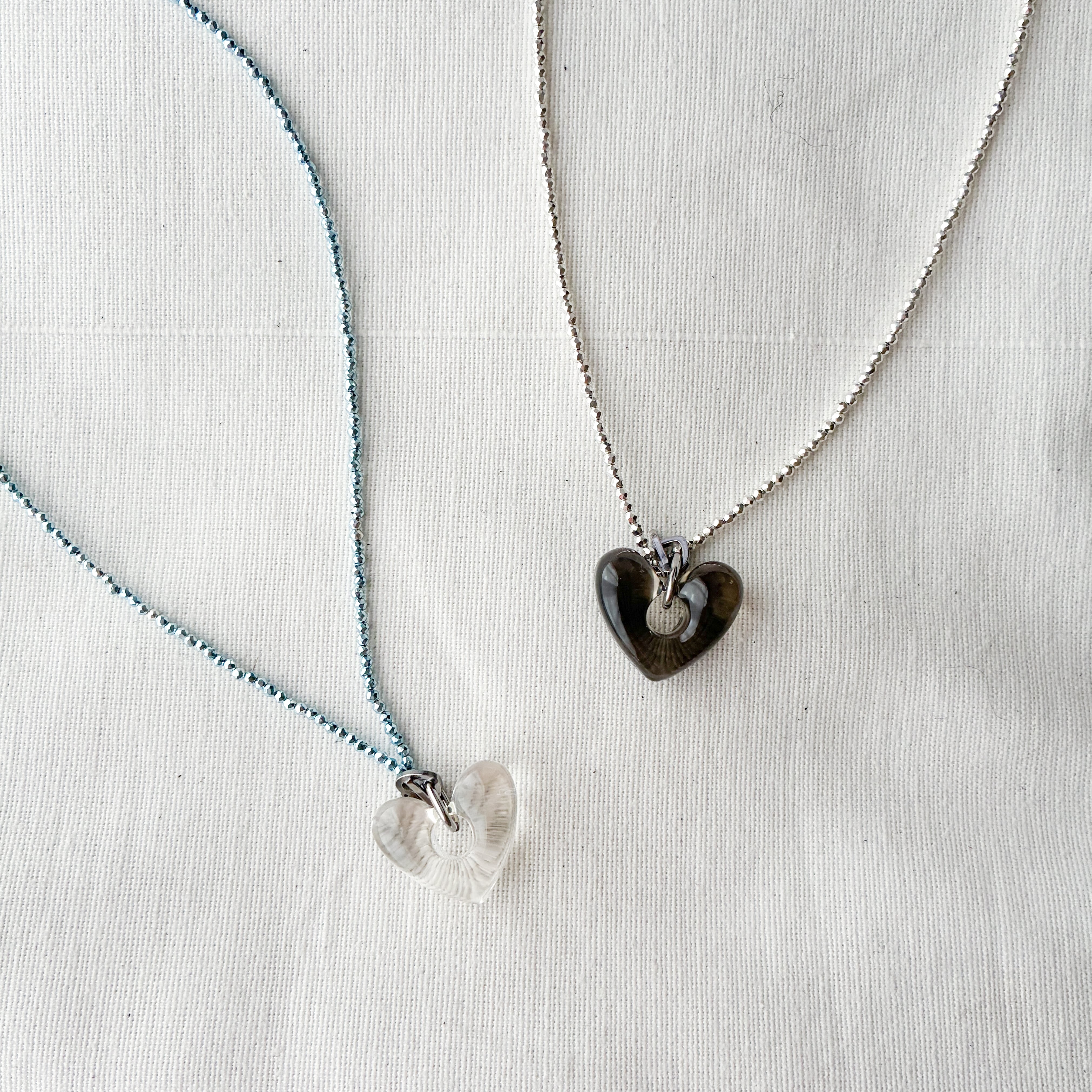 透明感のあるハートパーツが特徴のビーズネックレス。