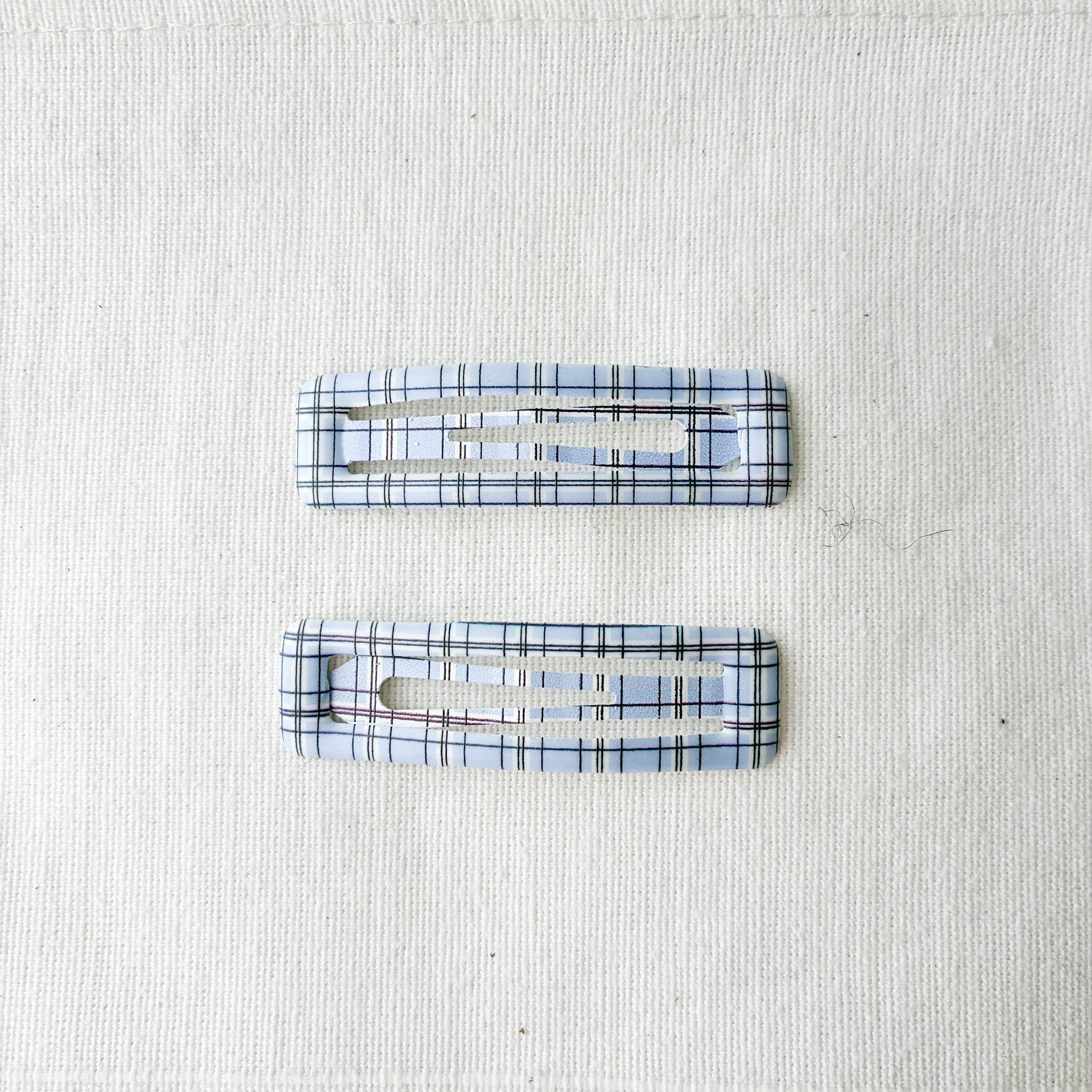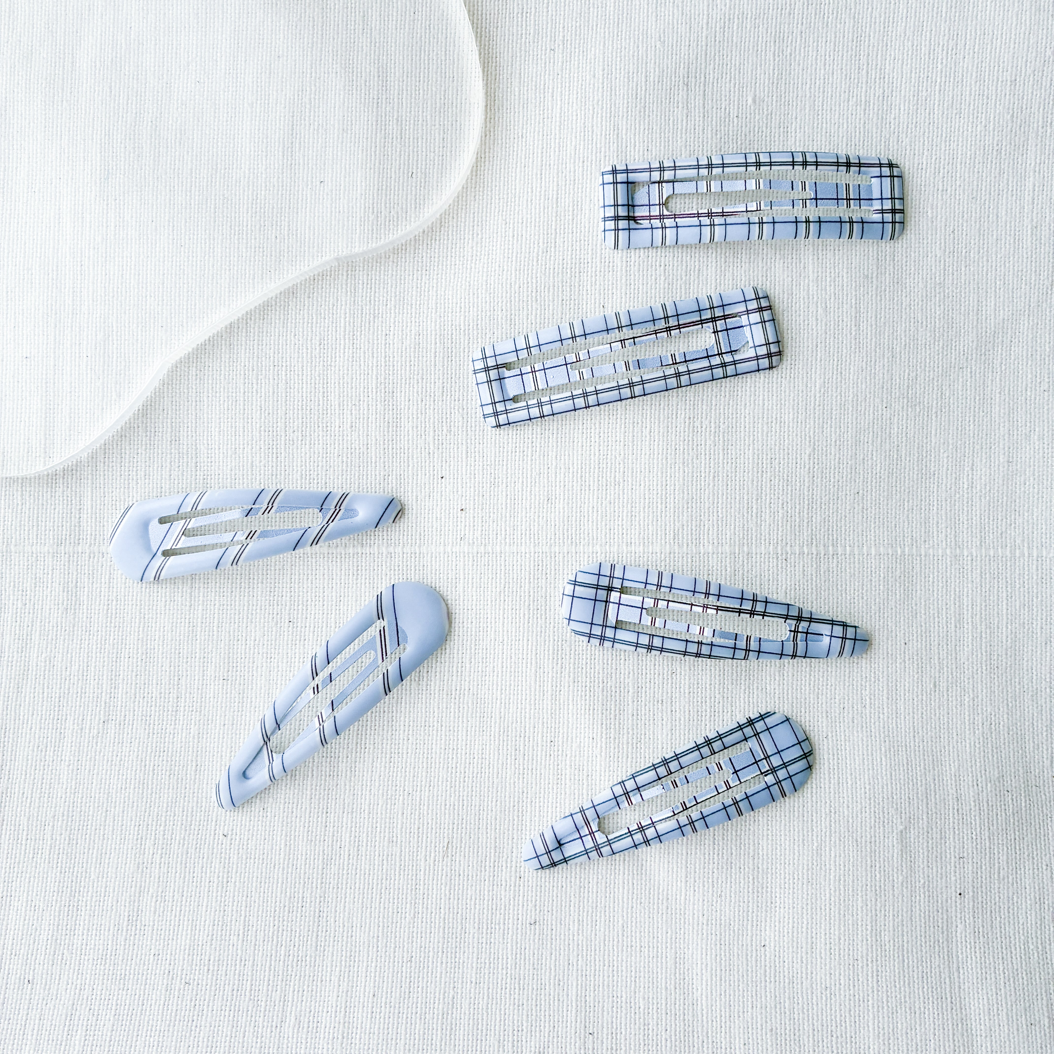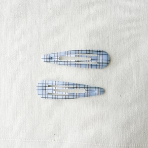 爽やかなブルーにチェックやストライプのデザインが可愛らしいヘアパッチン。